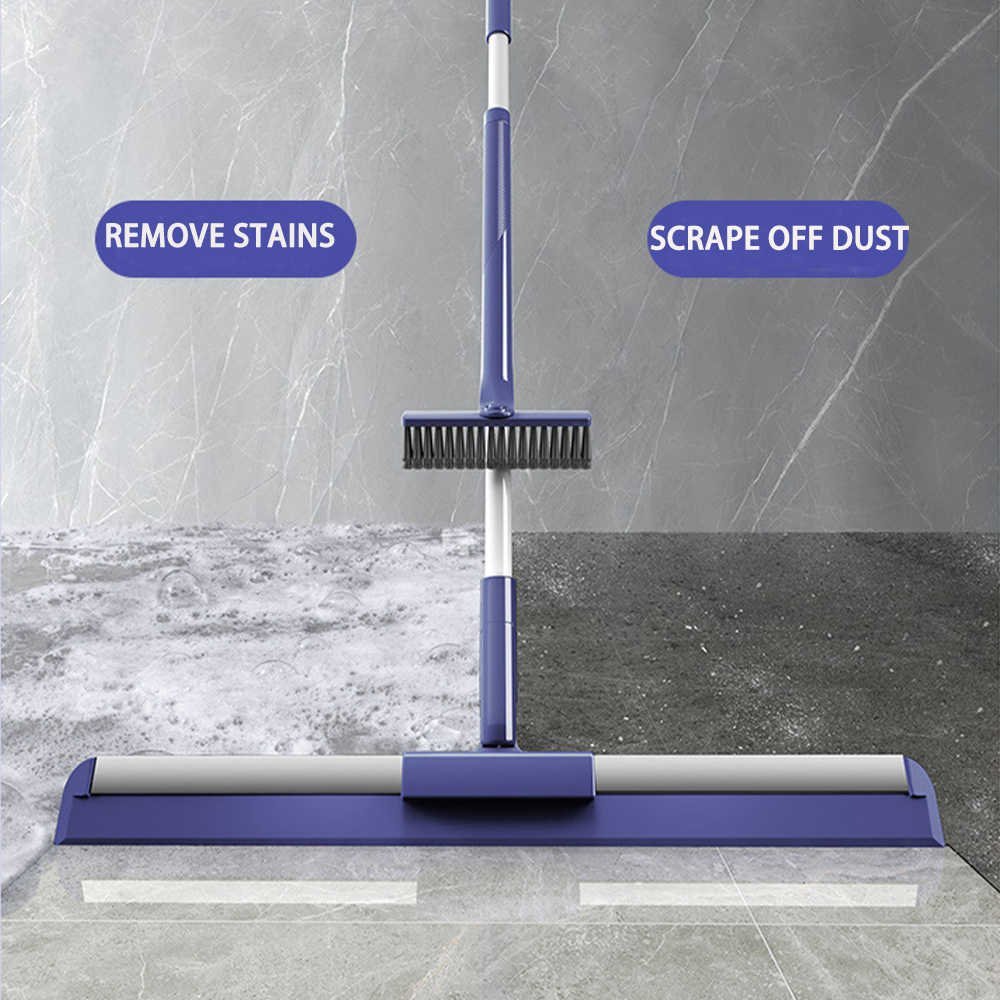✨ ফ্লোর স্ক্রাব ব্রাশ উইথ লং হ্যান্ডেল, ২ ইন ১ স্ক্রাবার এবং স্কুইজি ফর ক্লিনিং বাথরুম টাইল ফ্লোর সিলিকন ব্রাশ